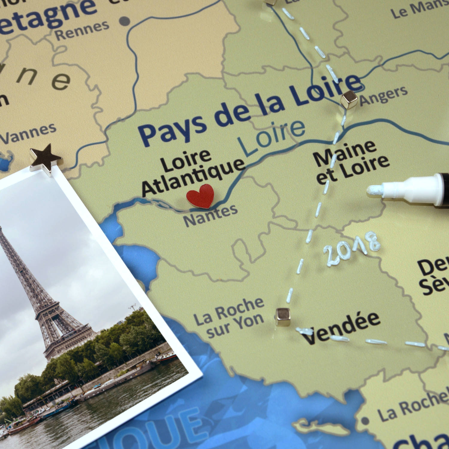 Keine Reise sollte vergessen werden, kein Erlebnis abgetan, kein Moment auf der Strecke bleiben. Alle deine besonderen Errungenschaften und Träume kannst du auf deiner eigenen Frankreichkarte festzuhalten.